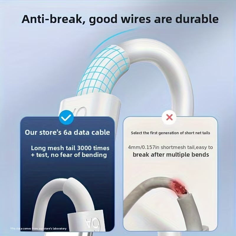 6A Rapid Charging Cable for Samsung S23 S22 S21, Mi 13, Huawei P40, OPPO, VIVO, Oneplus